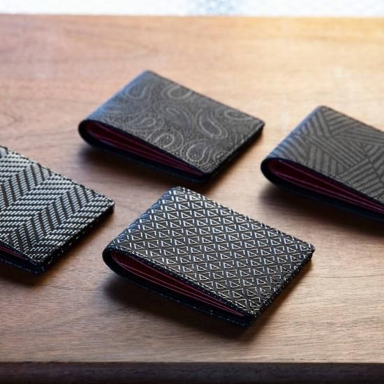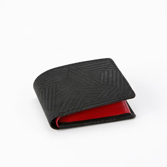 手元の収まりがよい二つ折りタイプのお財布です。内側から覗く黒と赤の革の美しいコントラストが、高級感を演出。