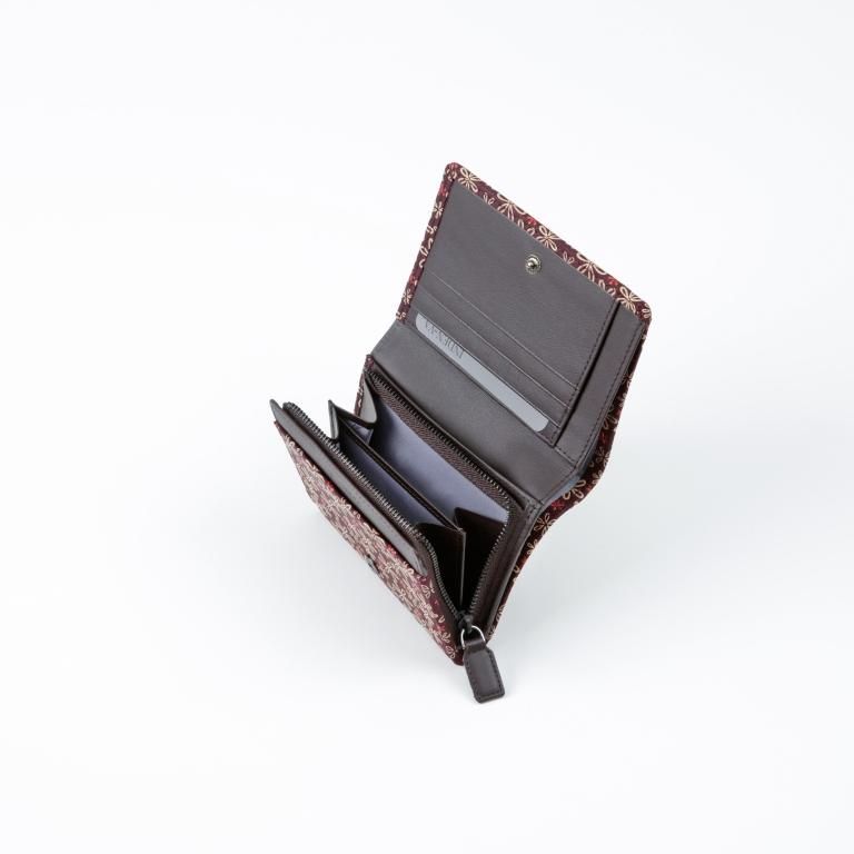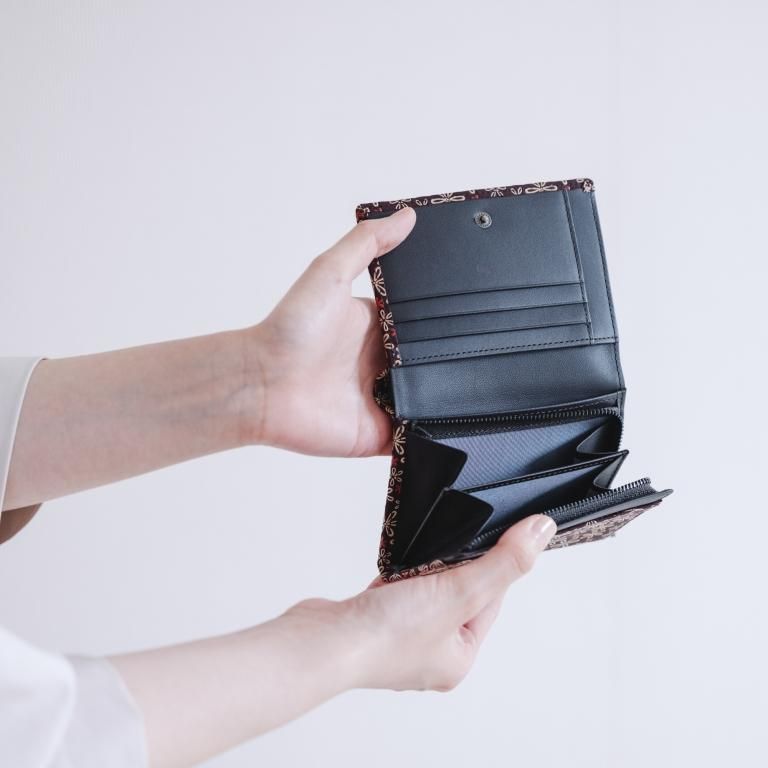 二つ折でコンパクトながらも、少し大きめ容量のL字ファスナー小銭入が特徴。