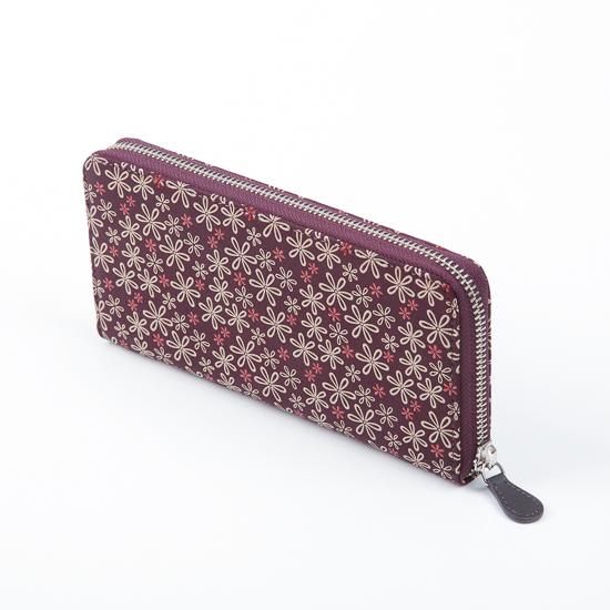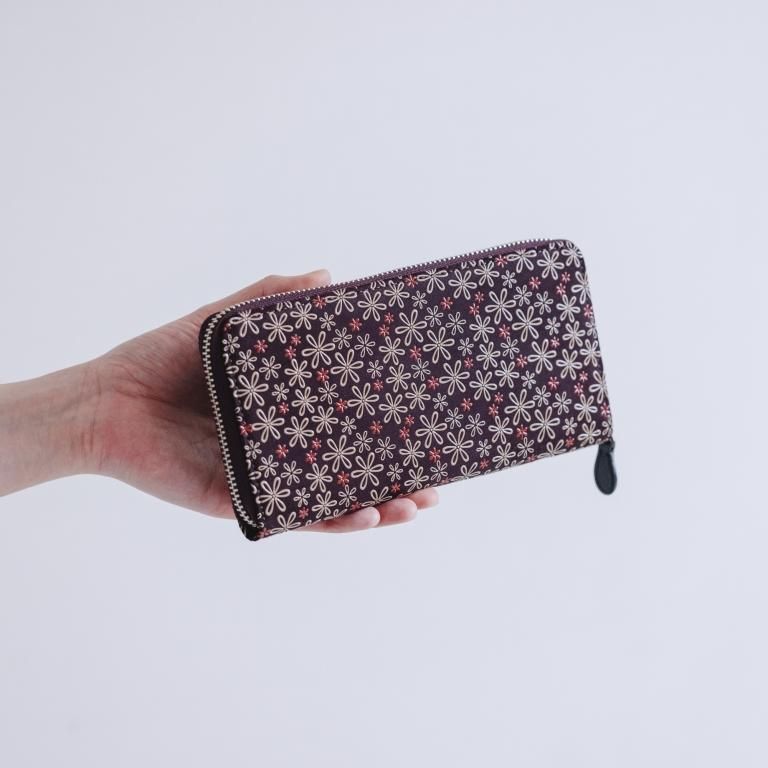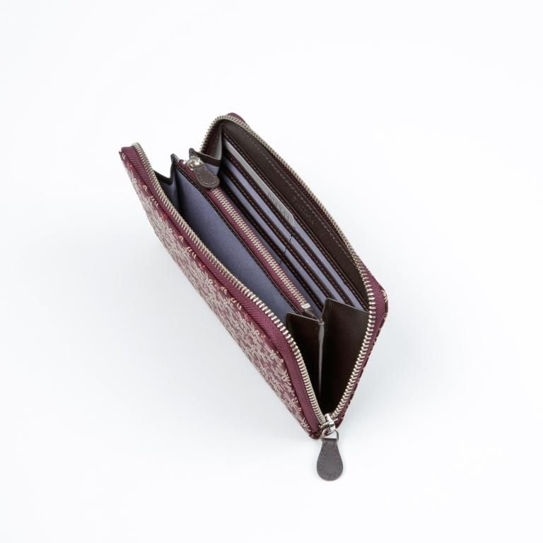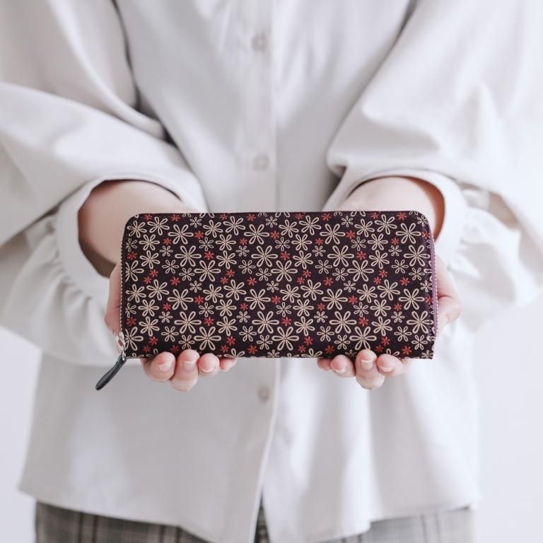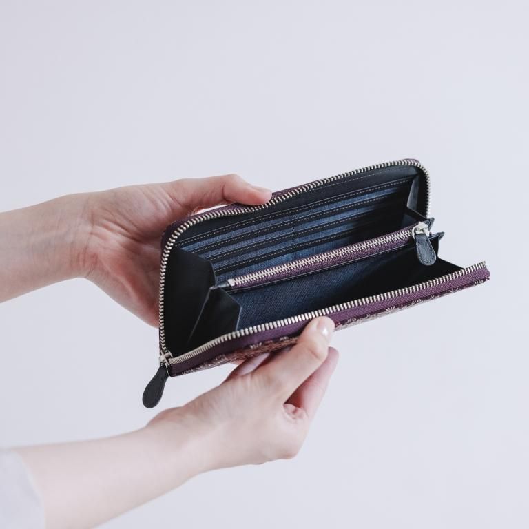 ラウンド型のファスナーでスムーズに開閉できる長財布。