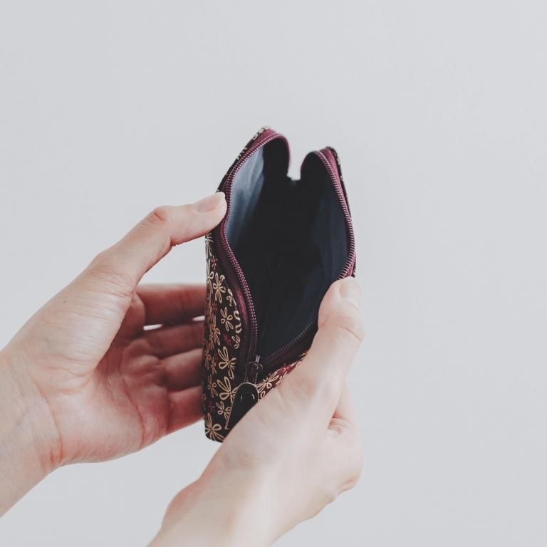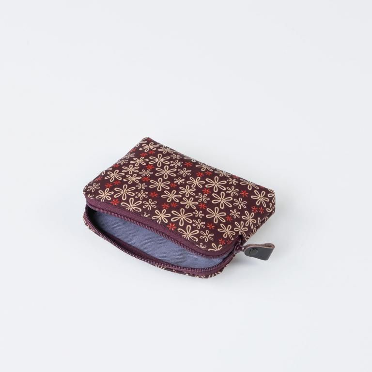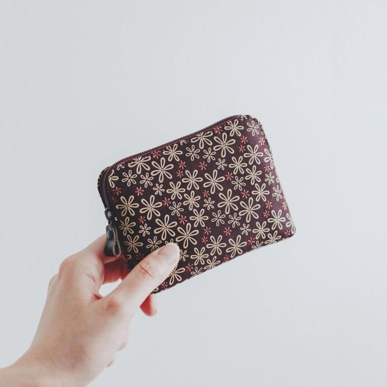 手のひらに収まる、小型ポーチです。中身が取り出しやすい丈夫なラウンドファスナー式。