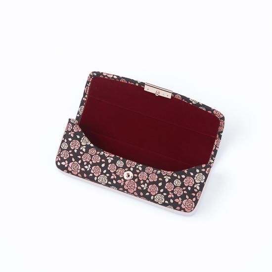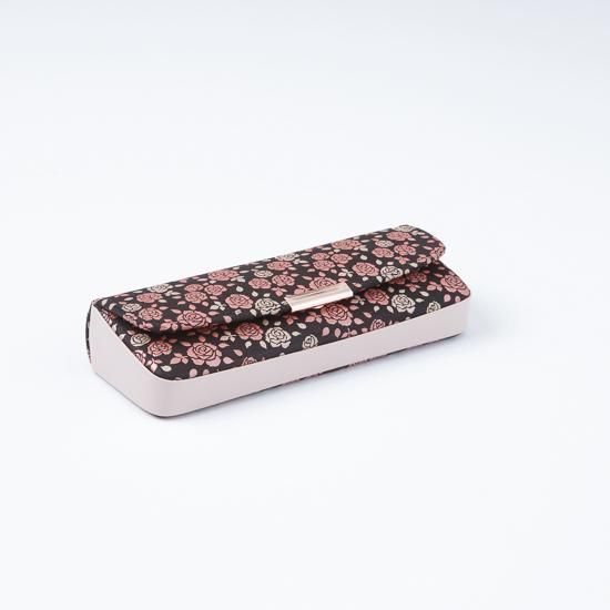 黒地に小さな薔薇をピンクと白の二色の漆で咲き誇るように描いた「かぐわ」シリーズ。