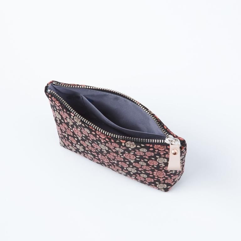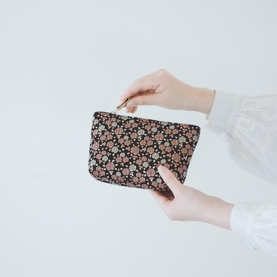 丸みのある台形型は手のひらへの収まりも良く、より愛らしい印象を与えます。内側にポケットが1つ付きます。