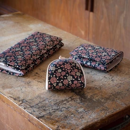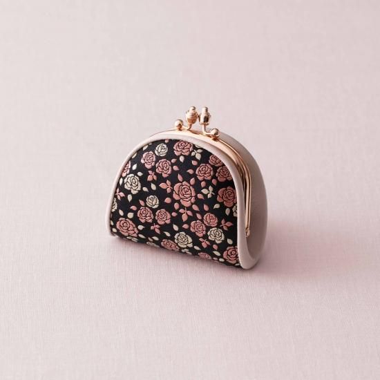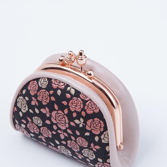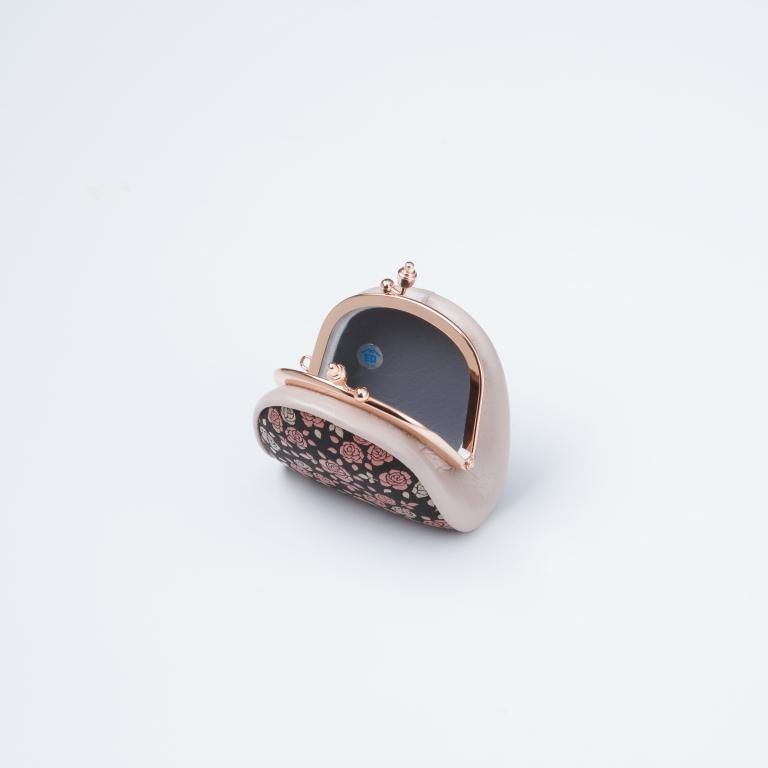 ピンクゴールドの金具が可憐な印象を与えるがま口タイプの小銭入です。