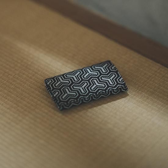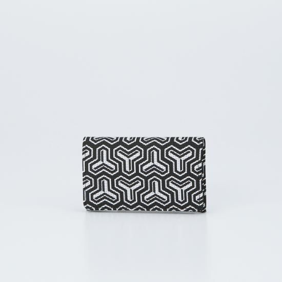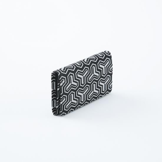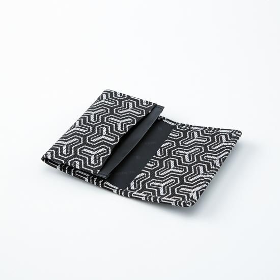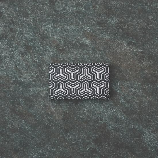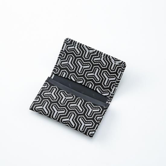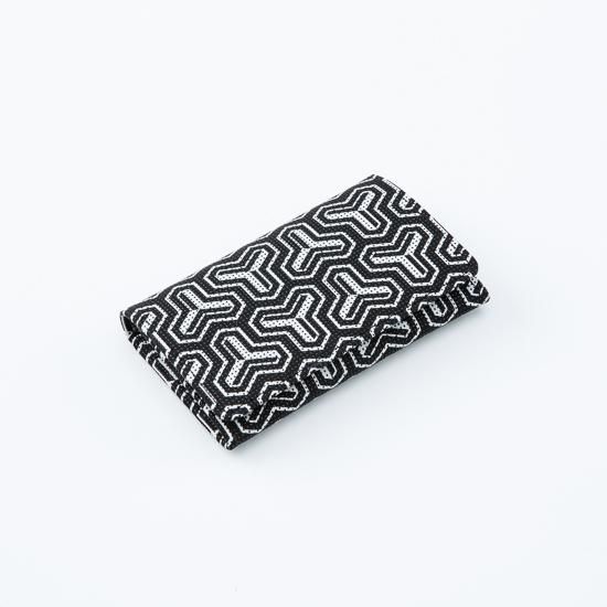 武運と福徳をもたらす神、毘沙門天の鎧に彫られている模様に由来し名付けられた「毘沙門亀甲」を黒地に白更紗の新しい配色で描いた、