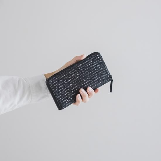 深みのある黒地に、黒漆で描く模様が儚げに光沢を放つシックな長財布。ご愛用とともに、柔らかい鹿革の風合いと漆の冴えが際だちます。