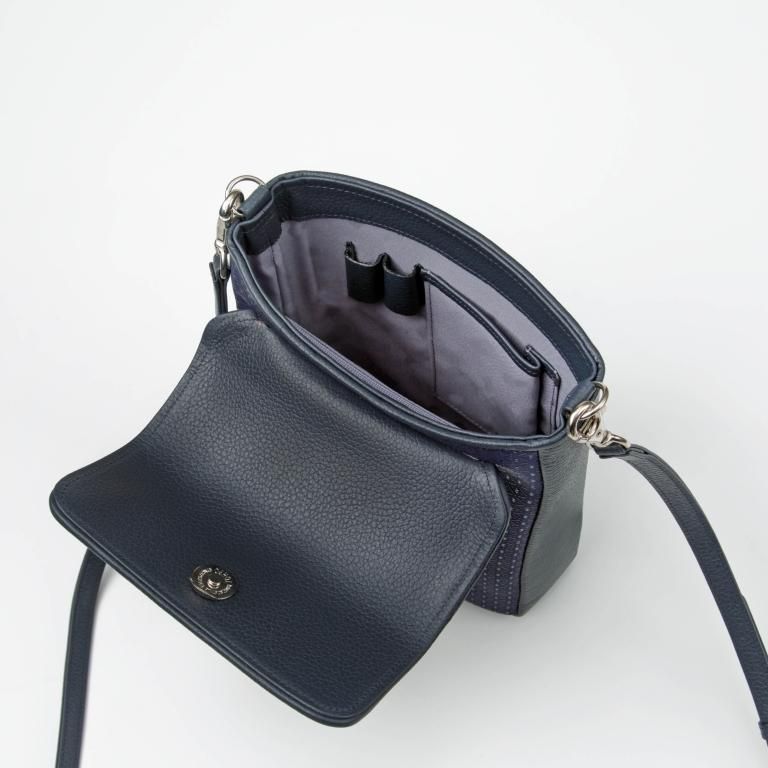 - 口前はマグネット留めのかぶせ式/持ち手付き/ショルダー紐は取り外し可能