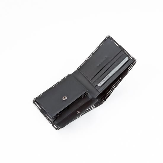 4つのカードポケットを備え、札入部分には中仕切りがあります。フラップポケットの小銭入にも中仕切りがあり、中身が取り出しやすい仕様です。