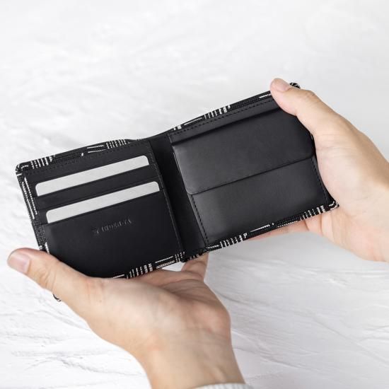 手のひらに収まりの良い、二つ折りタイプのお財布です。