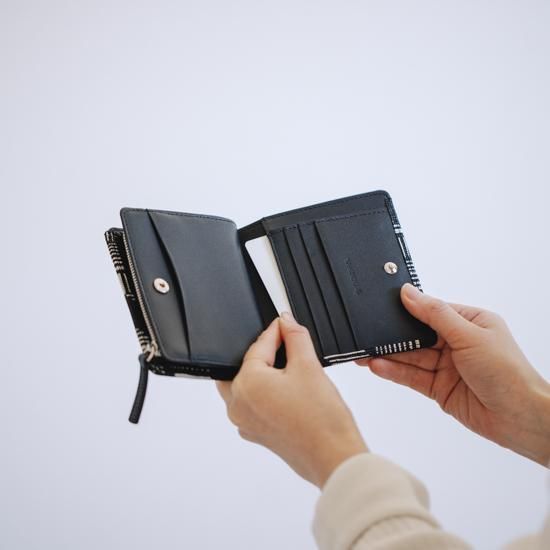 二つ折りのお財布を、従来の機能はそのままに手のひらサイズまでコンパクト化しました。札入は、中仕切りで2つに分かれ整理しやすい仕様。