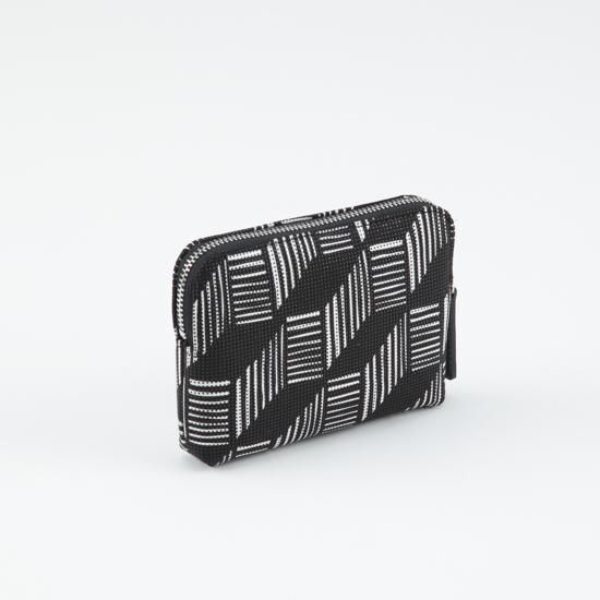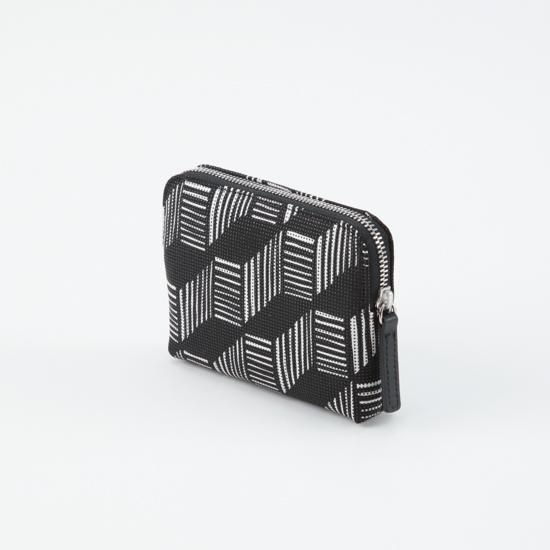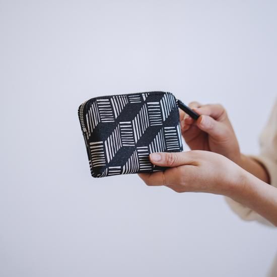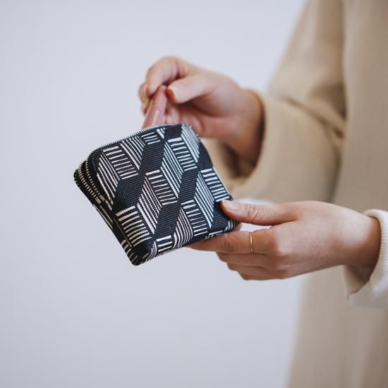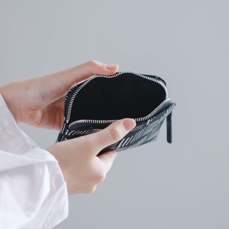 手のひらに収まる、小ぶりで薄いタイプのポーチです。中身が取り出しやすいラウンドファスナー型。