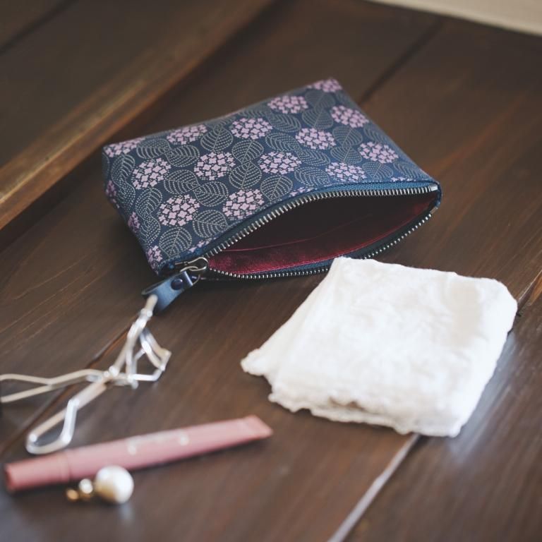 コンパクトながら、メイク道具はもちろんパスポートや通帳なども収納可能な大きさのポーチです。