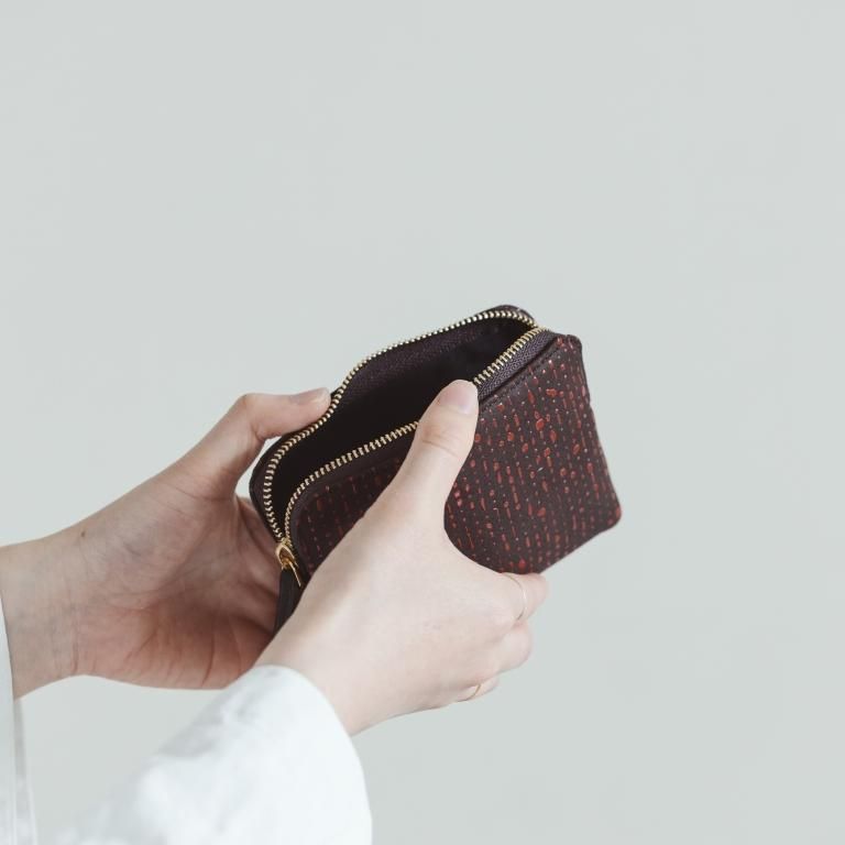 手のひらに収まる、小型ポーチです。中身が取り出しやすい丈夫なラウンドファスナー式。