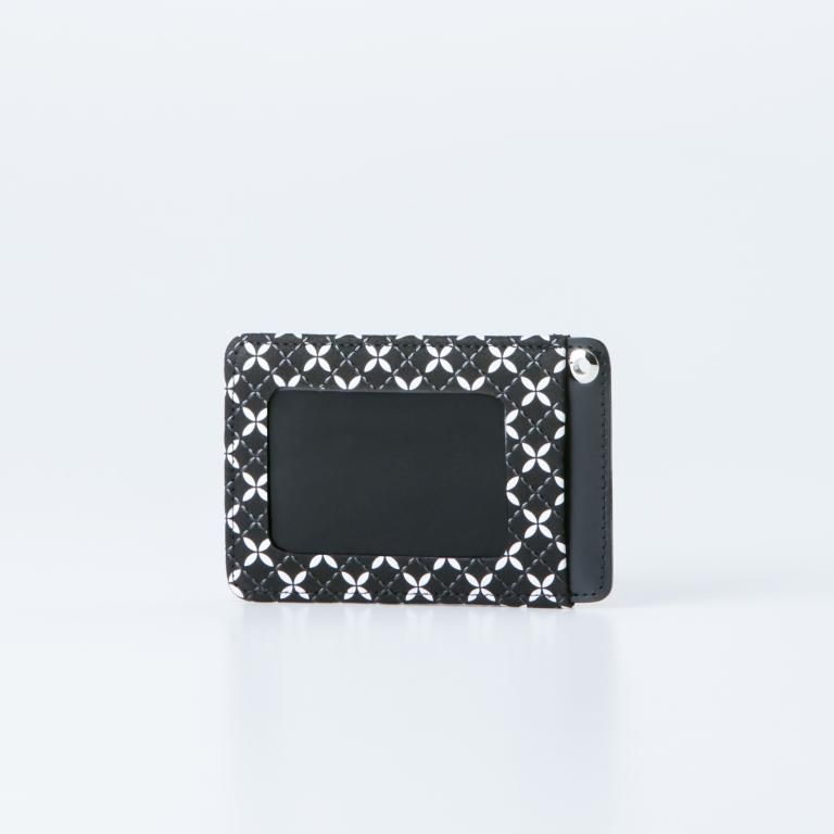 表面にも裏面にも収納可能なパスケース。角の穴にチェーンなどを通してバッグハンドルなどに付ける使用方法もおすすめです。