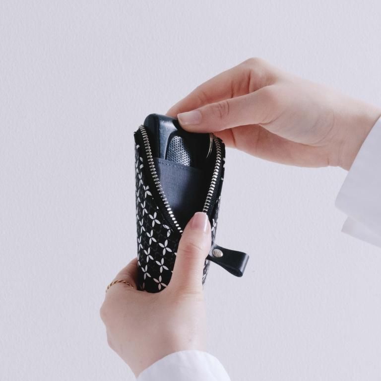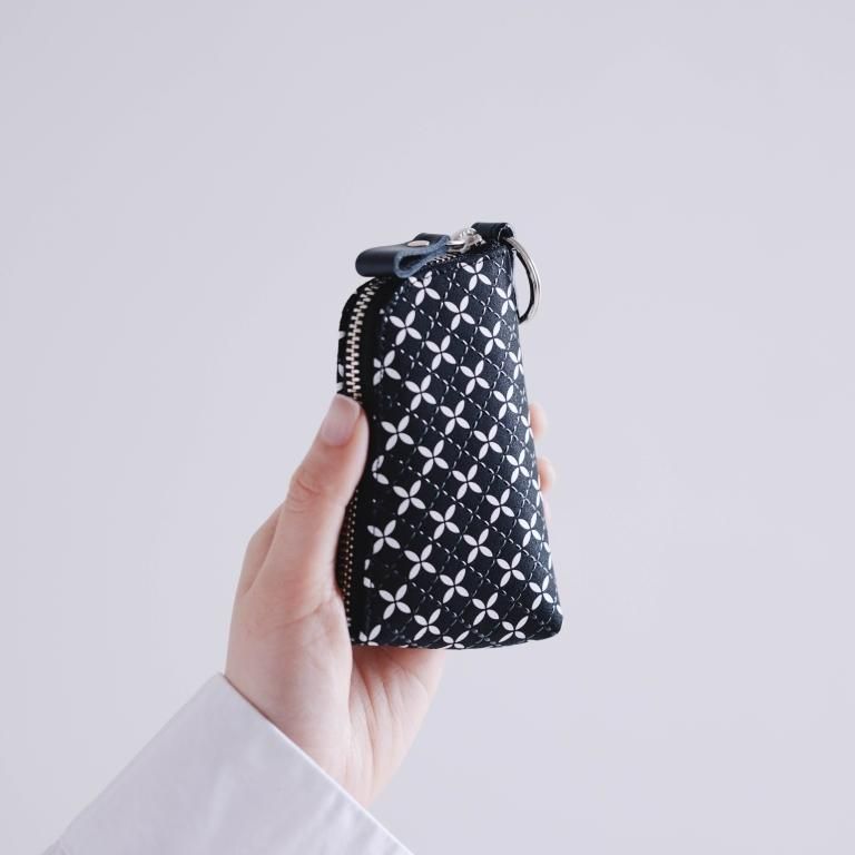 手のひらにすっぽりと馴染む絶妙な形のキーケースは、車の電子キーも丁度良く収まるサイズです。