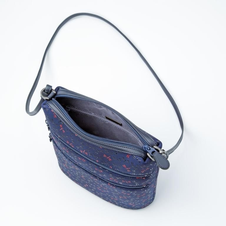 内側にも薄型のポケットが1つ付き、文庫本を縦に入れて少し余裕のあるくらいの深さがあります。コンパクトながら収納力に優れたバッグです。