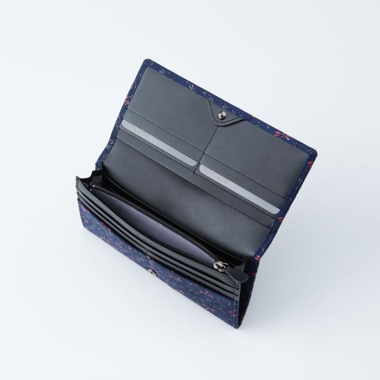 印伝革ならではの手触りと、艶やかな漆模様を贅沢に愉しめるようにデザインしたレディースの長財布。