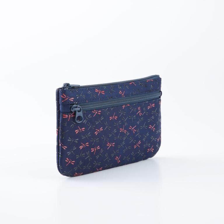 パスポートや通帳、母子健康手帳などの管理や持ち運びに便利なポーチです。背面にファスナーポケットが付いています。