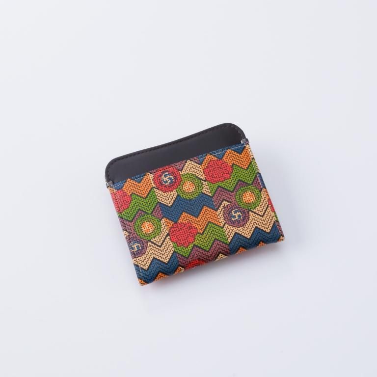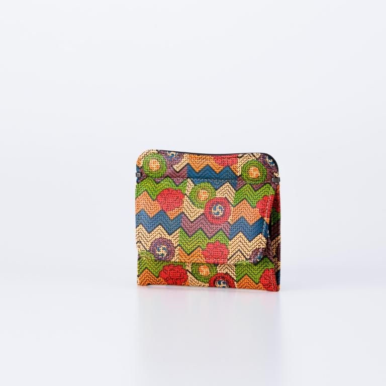 印伝の「巴」模様は山形の幾何文や花文などを取り入れた独自の創作模様です。