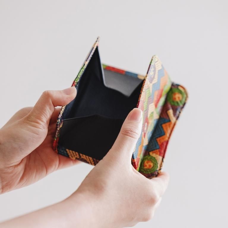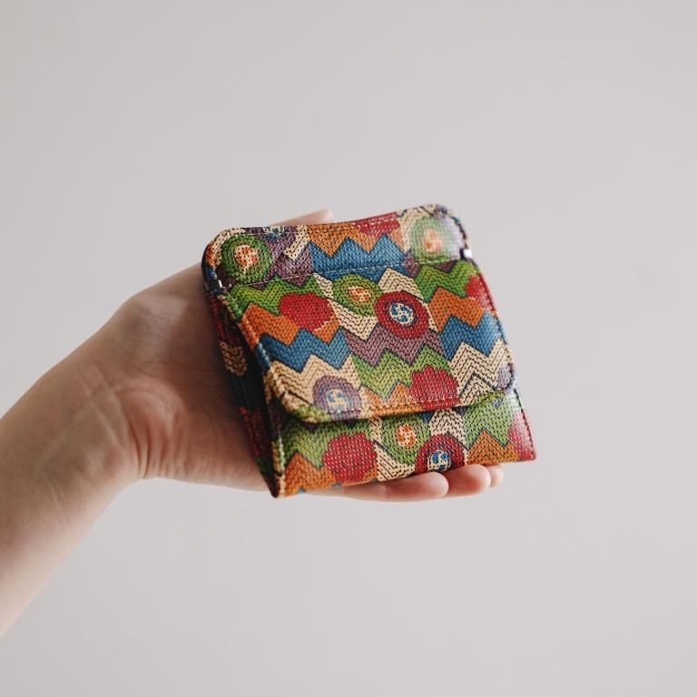 薄型で小さなバッグや上着のポケットなどに収めやすいボックス型の小銭入れ。