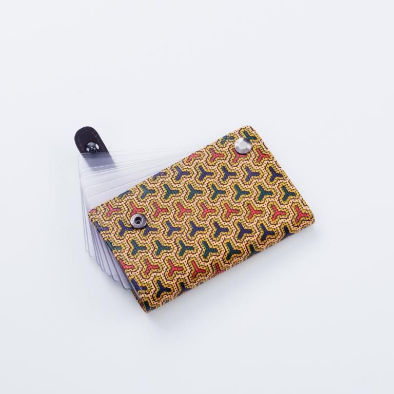 カード入れのクリアポケット10枚を印伝でお洒落に包みました。