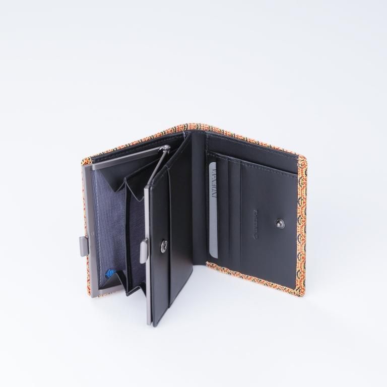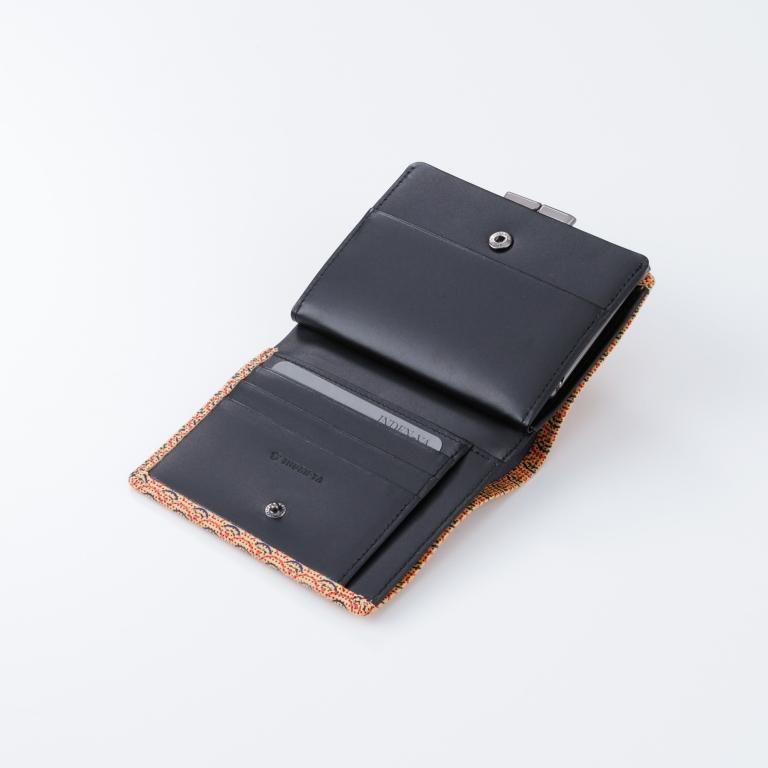 ベーシックな二つ折りタイプのお財布に、使いやすい大容量の“がま口”小銭入がひとつになった印傳屋の“がま札”。