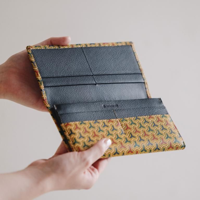 印伝革ならではの手触りと、艶やかな漆模様を贅沢に愉しめるようにデザインしたメンズに人気の長財布。