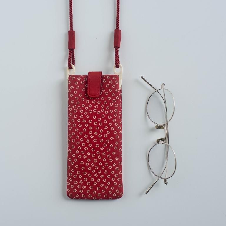 柔らかな印伝がしっかりとメガネを包み、メガネが飛び出る心配がありません。