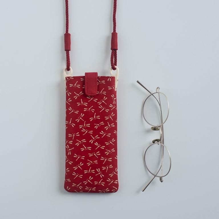 柔らかな印伝がしっかりとメガネを包み、メガネが飛び出る心配がありません。