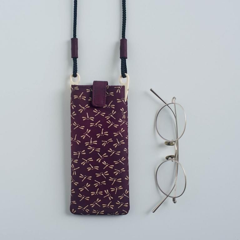 柔らかな印伝がしっかりとメガネを包み、メガネが飛び出る心配がありません。