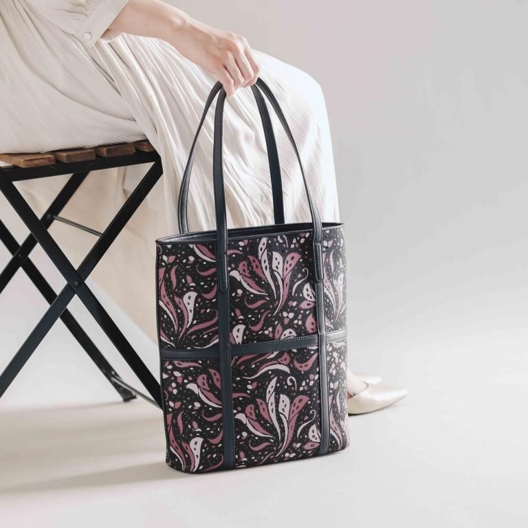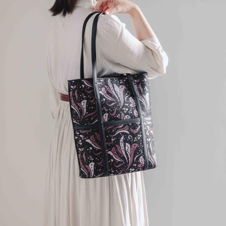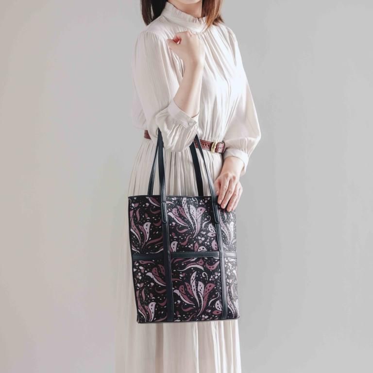 肩にかけた際のデザイン性とファッションとの調和を演出しながら、トートバッグのような収納力を兼ね備えているのが特徴です。
