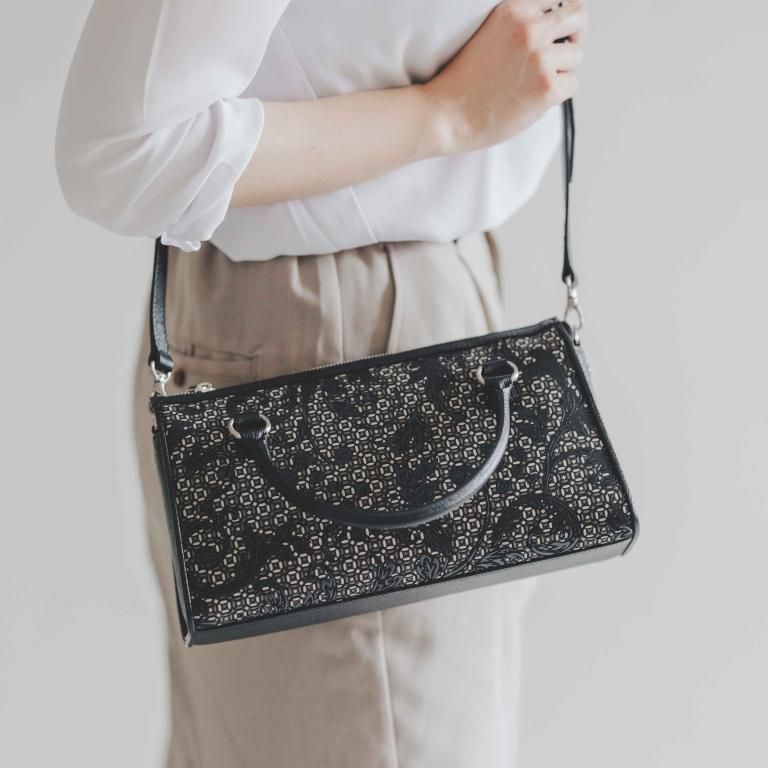 シックなボタニカルシルエットのデザインを活かした、2wayバッグ。
