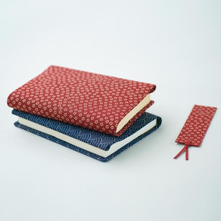 - 文庫本(高さ〜148mm、厚さ〜25mm)に適応/片方に本を差し込み反対側の端を折り込んで使用/ポケット×2/同柄の栞付き