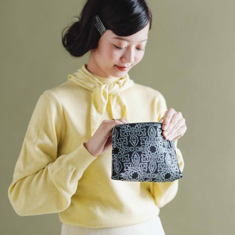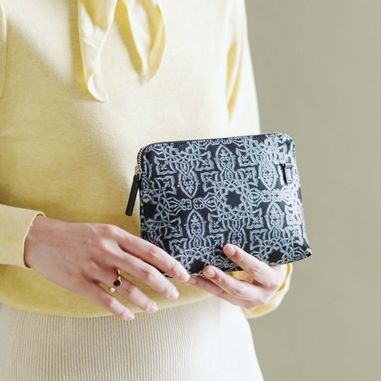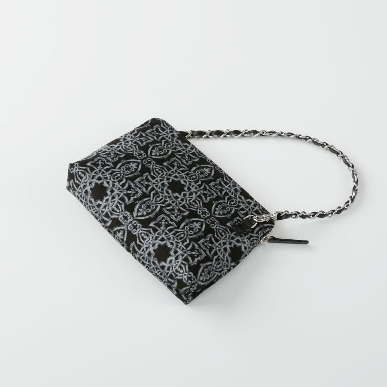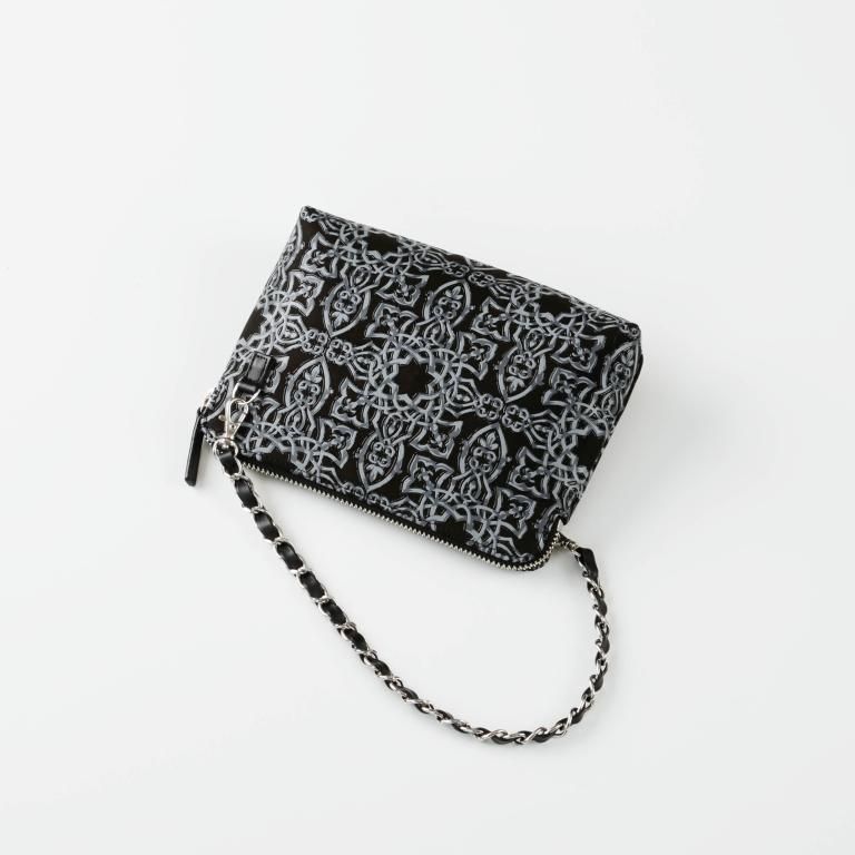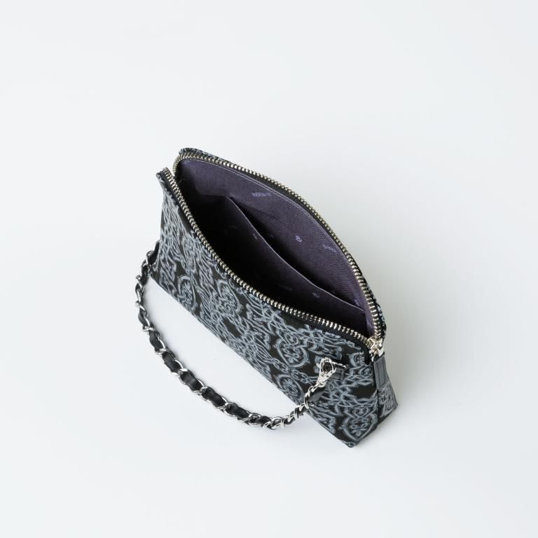 お財布にスマホ、化粧品やハンカチ、手帳なども収納できる大型のポーチをベースに、「Kinart」シリーズにふさわしいアクセサリーチェーンで飾り、優美なデザインへ昇華させました。