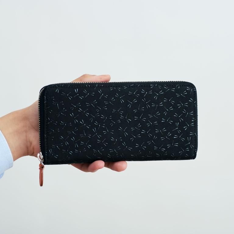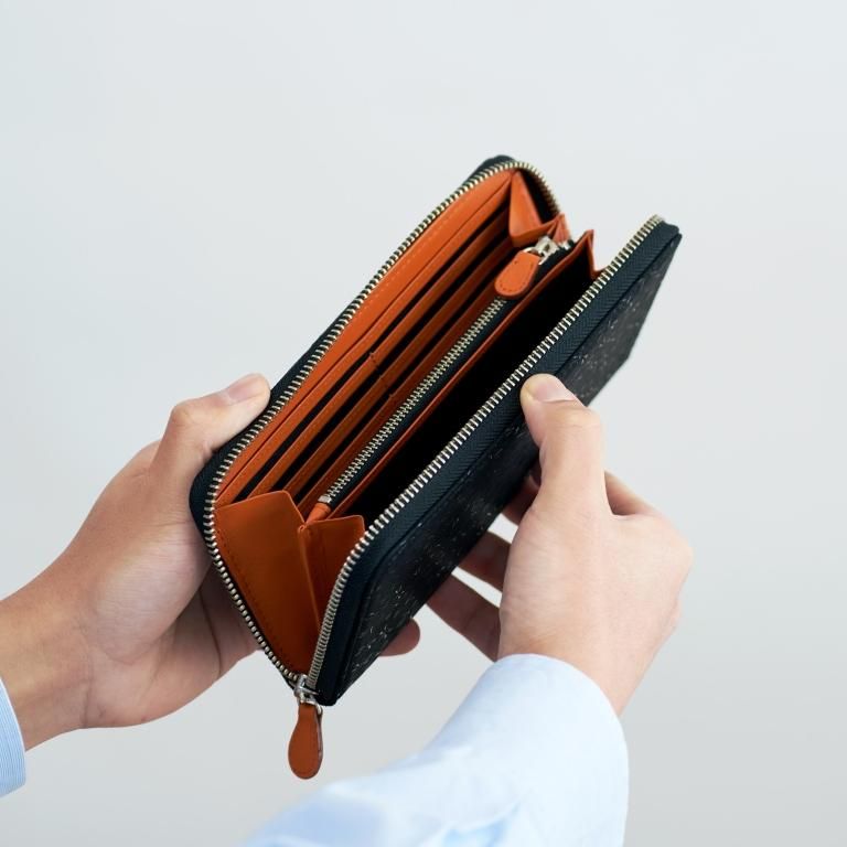 ラウンド型のファスナーでスムーズに開閉できる長財布。