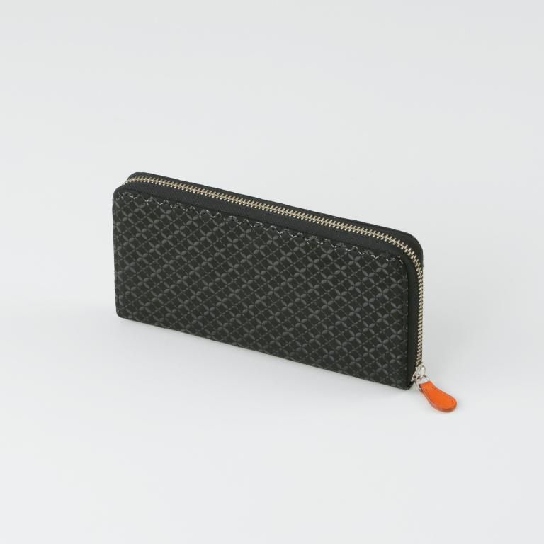 ラウンド型のファスナーでスムーズに開閉できる長財布。