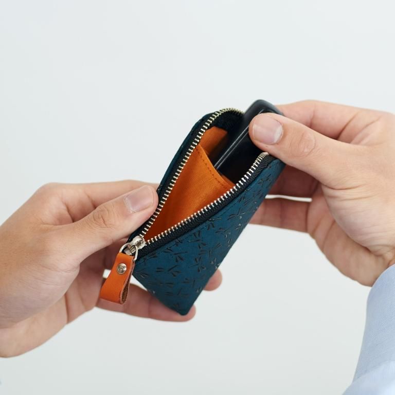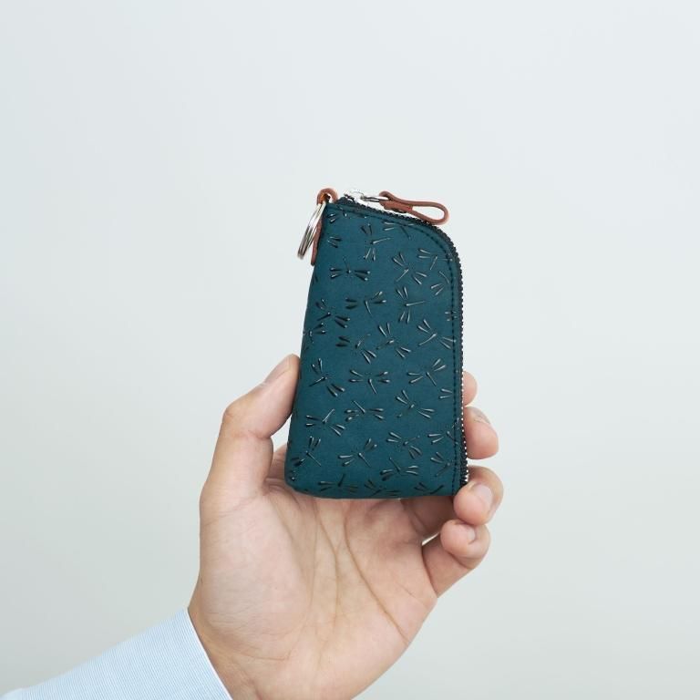 手のひらにすっぽりと馴染む絶妙な形のキーケースは、車の電子キーも丁度良く収まるサイズです。