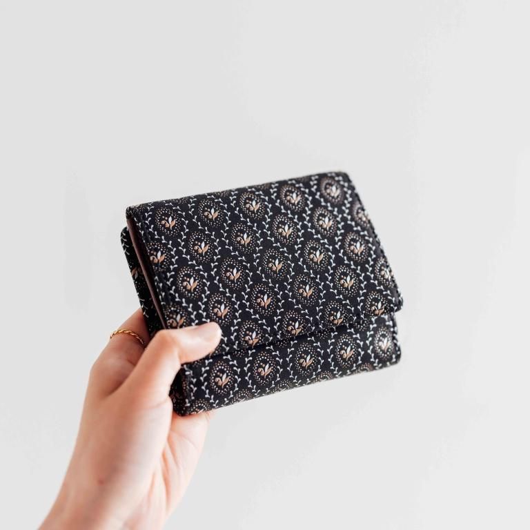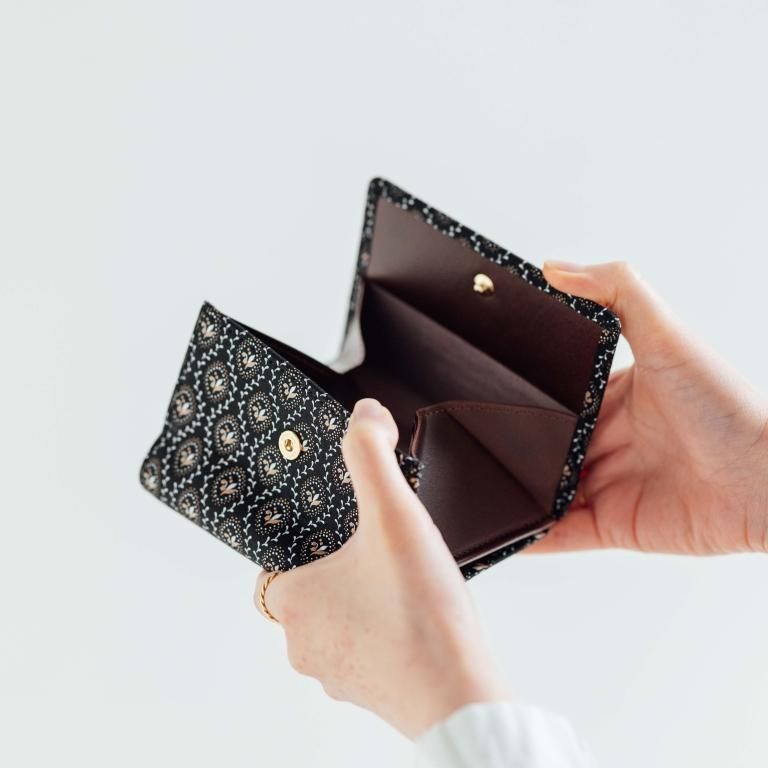 ベーシックな二つ折りタイプのお財布。お札とカード複数枚を収納しても、コンパクトで使いやすいサイズ。