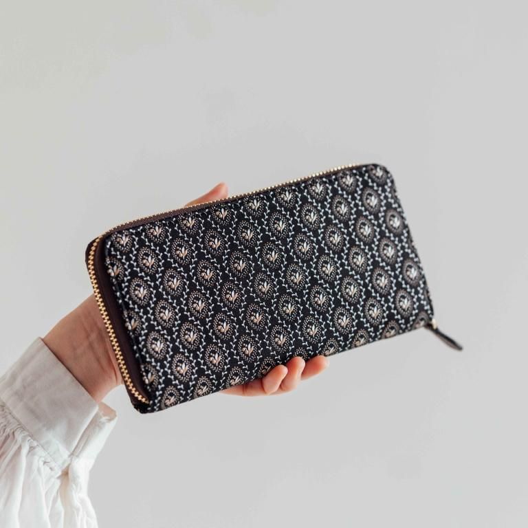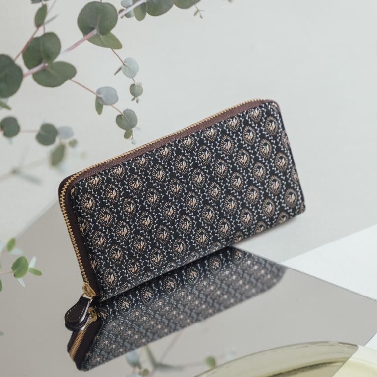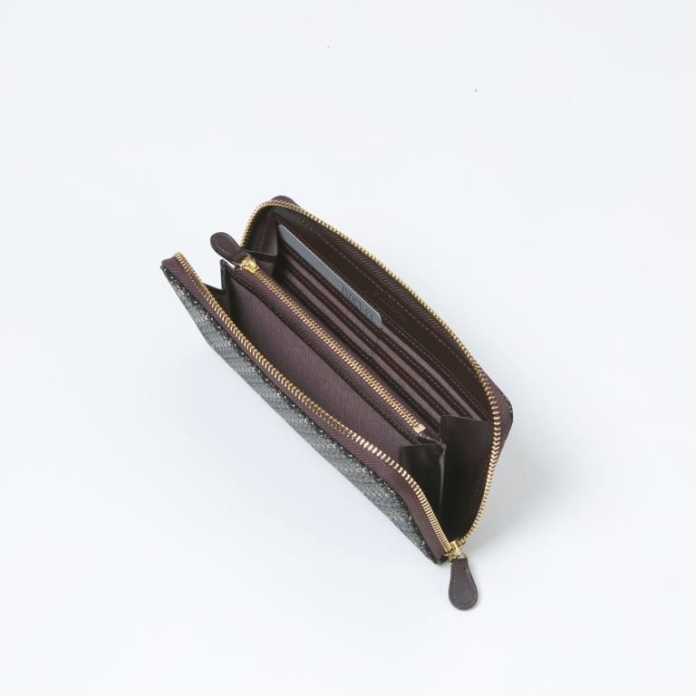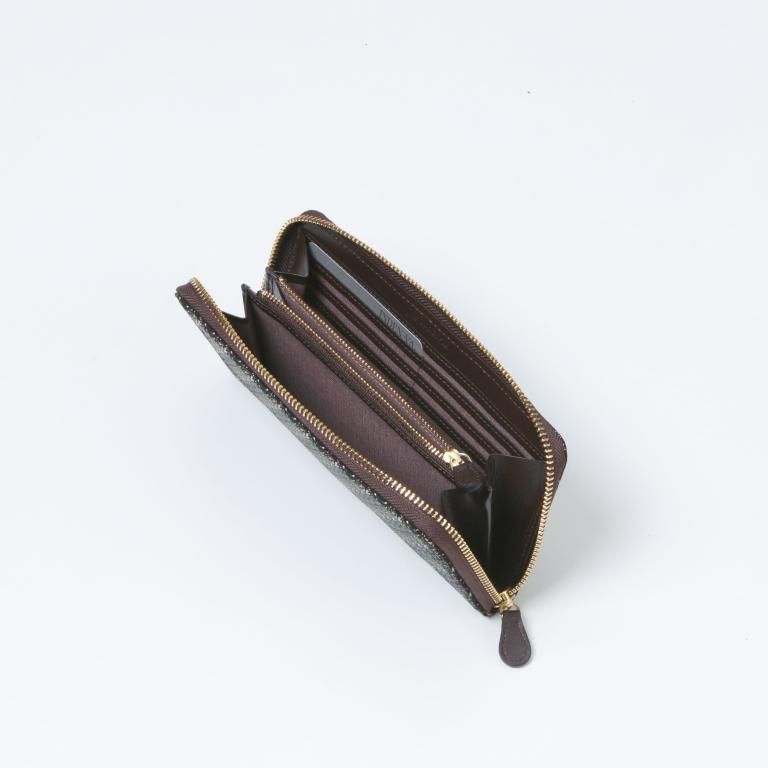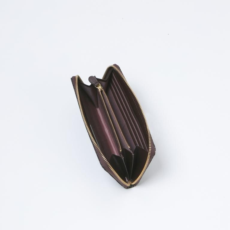 ラウンド型のファスナーでスムーズに開閉できる長財布。