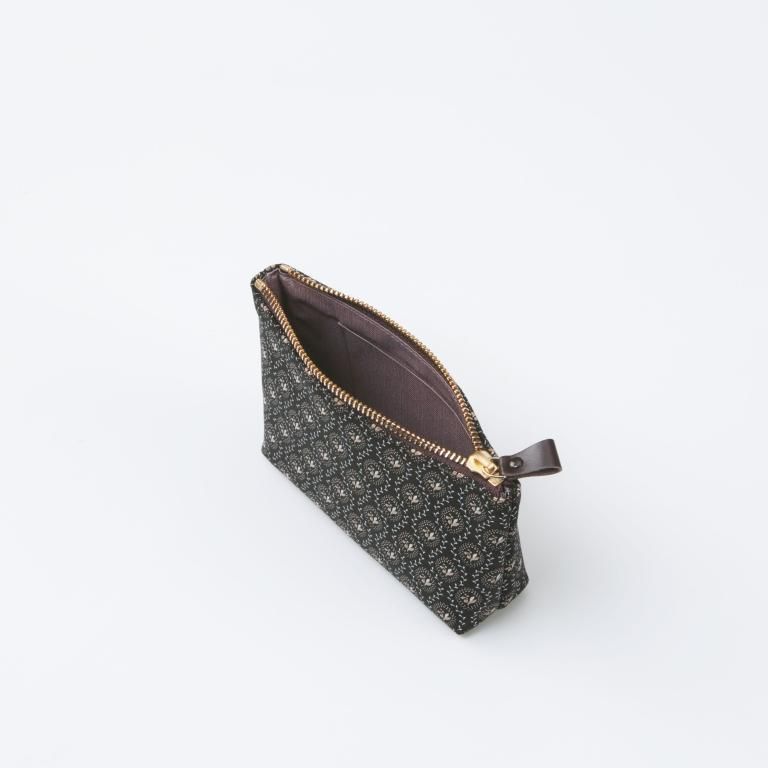 コンパクトながら、メイク道具はもちろんパスポートや通帳なども収納可能な印傳屋定番のポーチです。