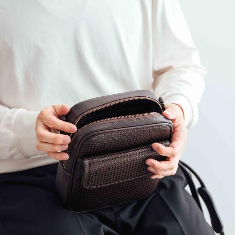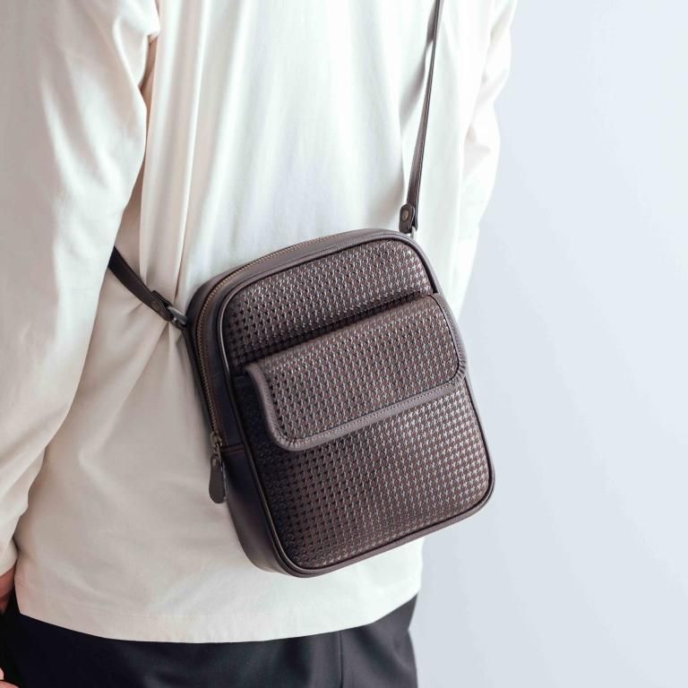 オーセンティックなデザインと、しっとりとした漆の艶めきが重厚感を演出するメンズショルダーバッグです。