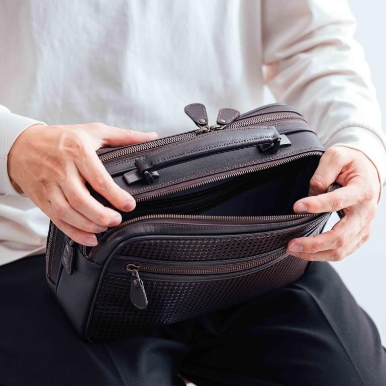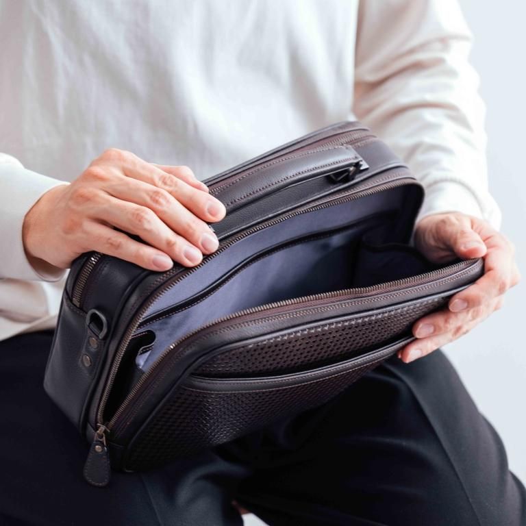 アクティブに使いやすいセカンドバッグに“もうちょっと”の収納を増やしたメンズハンドバッグです。
