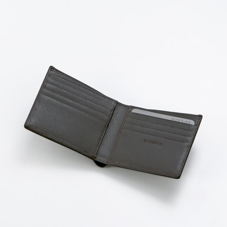 中仕切りで別れる2つの札入れポケットと、8つのカードポケットを備えています。