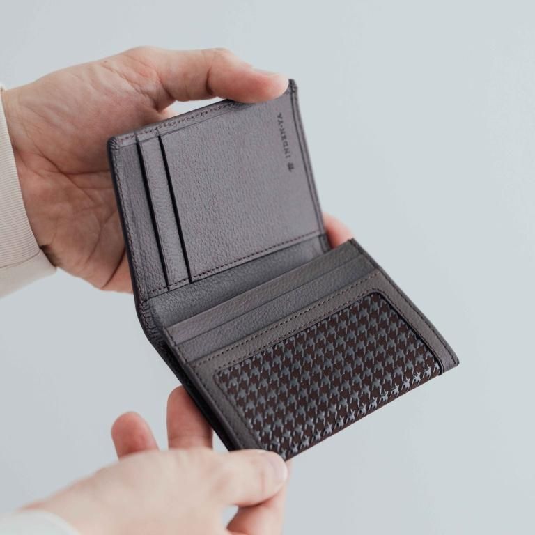 「千鳥格子」の漆模様が、つややかな光沢として手元に華やぎを添える本シリーズ限定のビジネスカードケース。