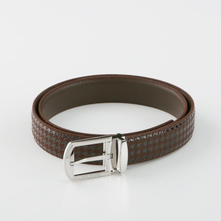 シーンを選ばない「千鳥格子」のデザインが、腰元に華やぎを添えるシリーズオリジナルのベルトです。