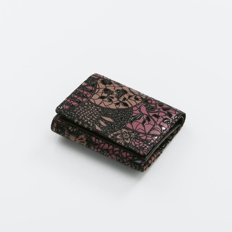 大人びた葡萄酒色と滅赤(けしあか)、2色の更紗と黒漆で描いた鱗模様が、手もとに上品な印象を演出します。