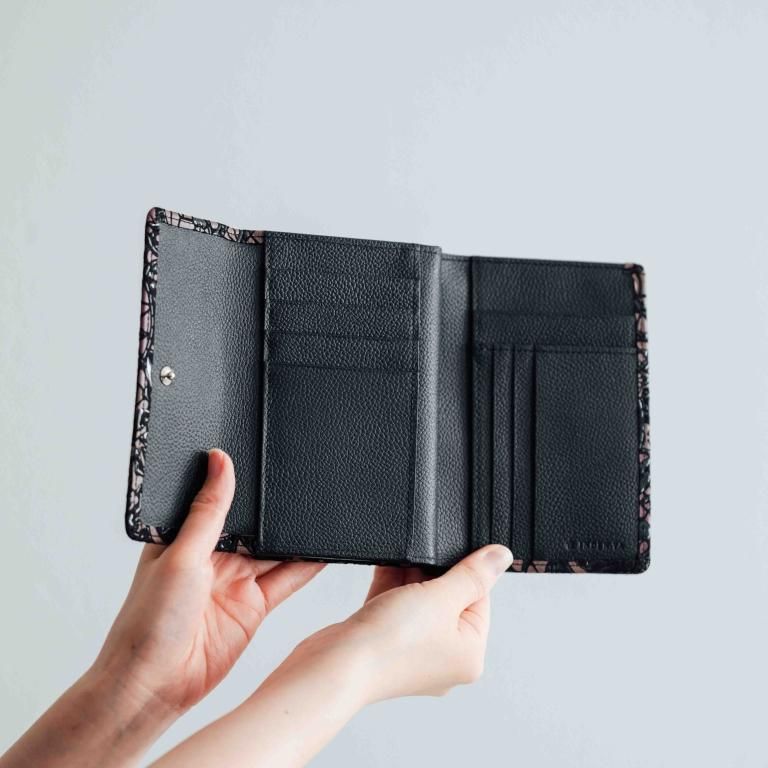 コンパクト感と実用的な容量を兼ね備えた二つ折りのミドルウォレットです。
