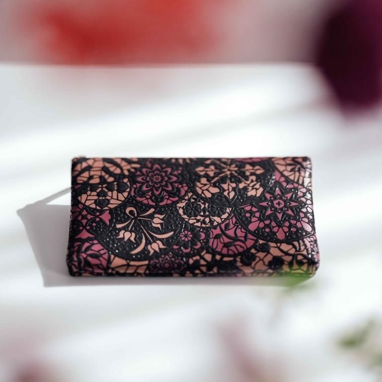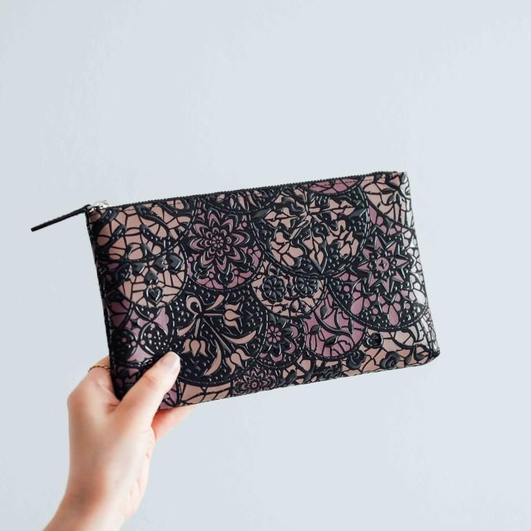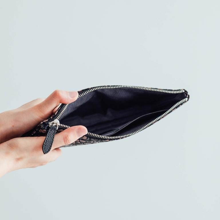 「RYUOLA」の鱗模様の重なりと、個々のフォークロアのデザインを活かしたオリジナルポーチ。