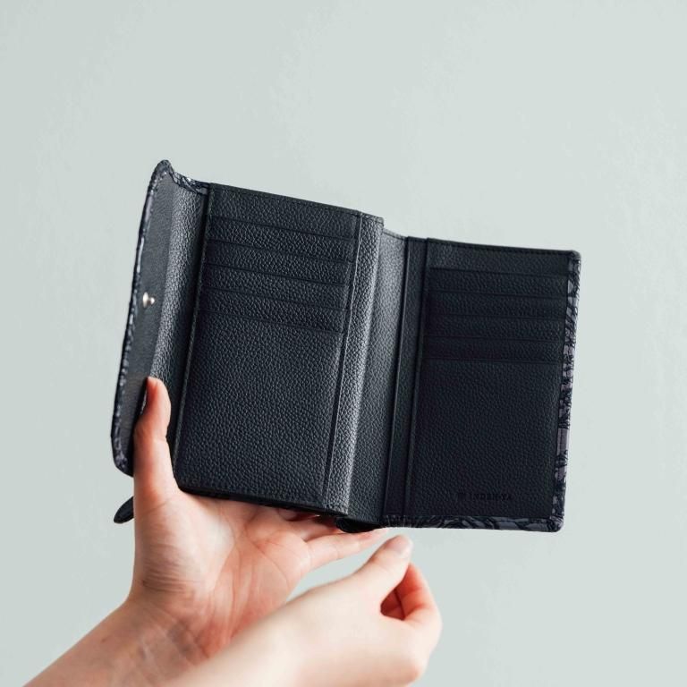 コンパクト感と実用的な容量を兼ね備えた二つ折りのミドルウォレットです。