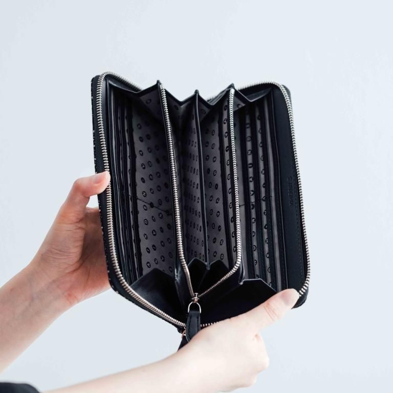キャッシュレスな時代でもお札や小銭、カードは一式で管理したい方のために、より機能的に進化したラウンドファスナー式の長財布です。