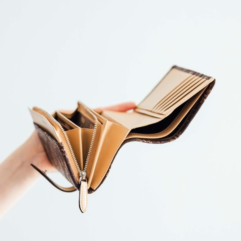 内側のL字ファスナー式小銭入は大きく開くため中身が確認しやすく機能的です。